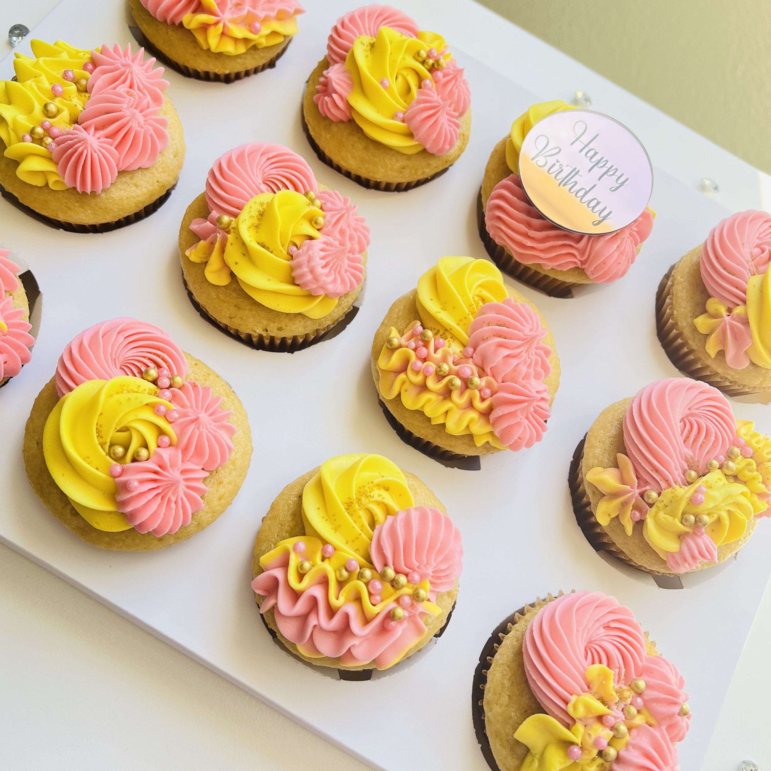 Our Monogram Letter Cupcake box is a canvas awaiting your personalized touch. Choose your letter, whether it’s the initial of your name, a loved one’s, or simply one that speaks to you. We then handcraft each cupcake with precision and passion, ensuring that every floral design is perfectly placed. Includes at least 1 dozen (one flavor, two colors). Order now and experience pure cupcake bliss!
