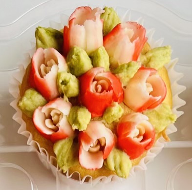 Discover the irresistible allure of our swirled frosting toppers atop standard size mouthwatering cupcakes. Indulge in a symphony of flavors with injections and/or toppers in various flavors (see below). Design limited to bakers choice, no floral. Minimum order: 1 dozen (one flavor, two colors). Add another dozen of the same flavor and enjoy 50% off 2nd dozen (USE CODE at initial order: BOGO50)