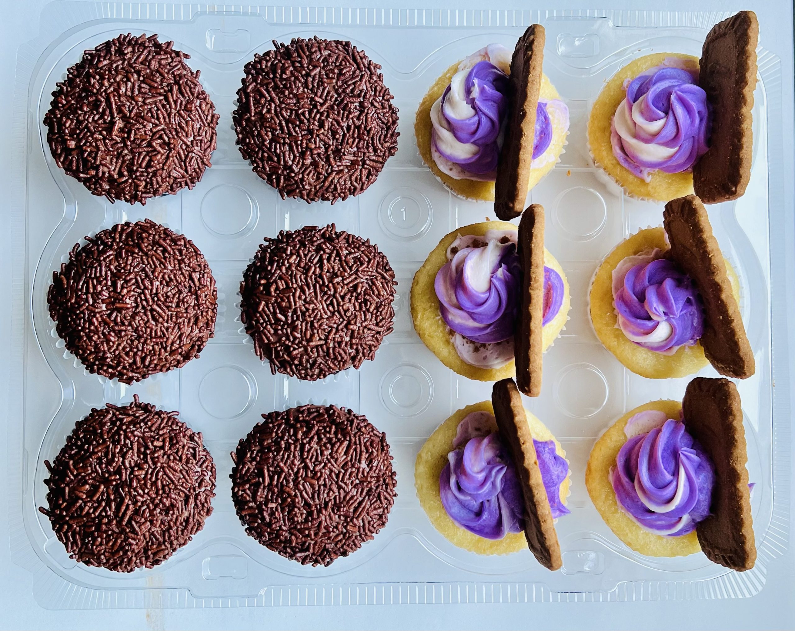 Treat yourself to our mouthwatering standard cupcakes. Indulge in a dozen of these classic creations adorned with our irresistible frosting toppers. Design – bakers choice, no floral. Minimum order: 1 dozen (one flavor, two colors). Add another dozen of the same flavor and enjoy 50% off 2nd dozen (USE CODE at initial order: BOGO50)