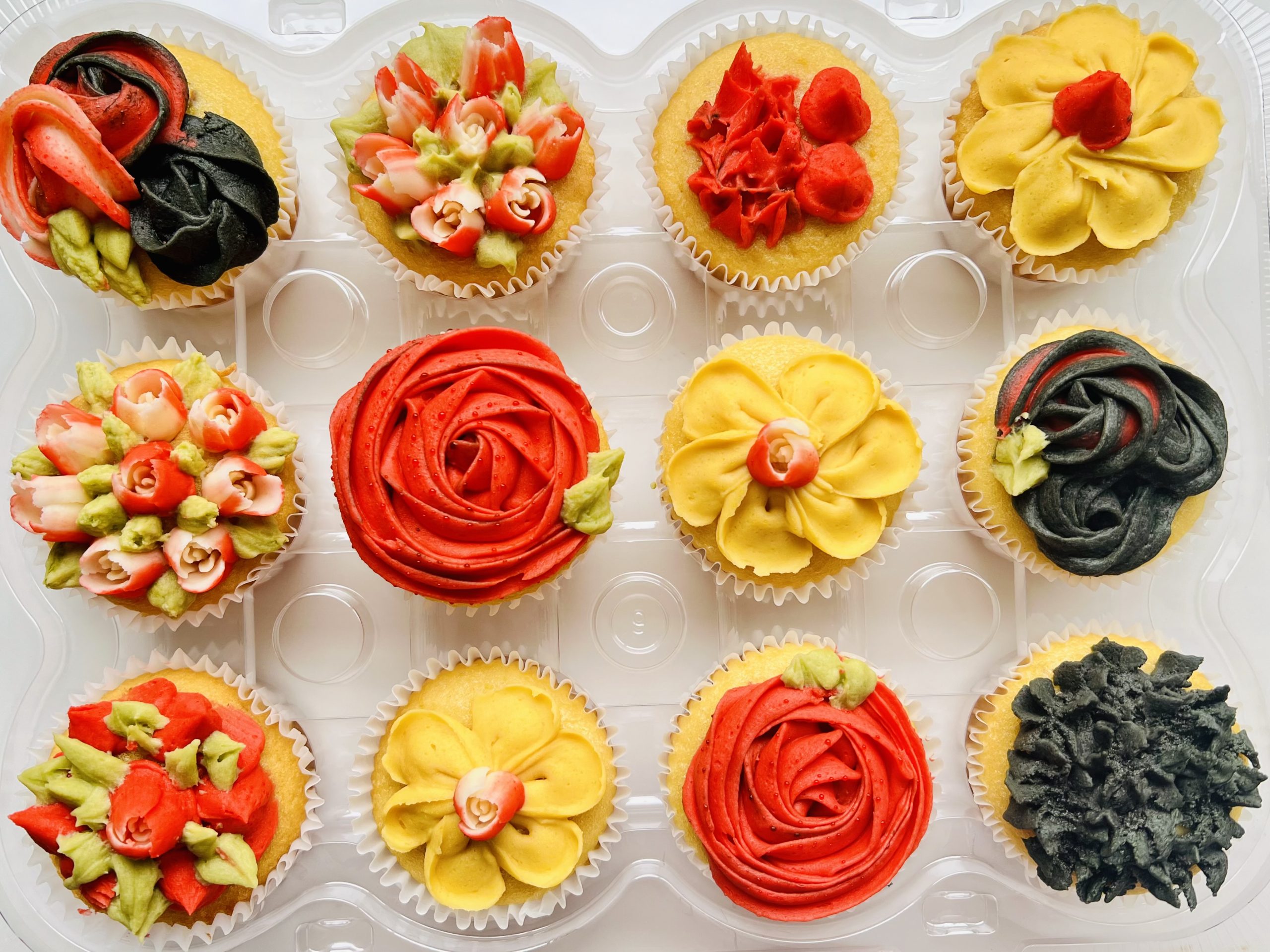 A tantalizing array of floral and succulent adorned cupcakes in colors of your choice! Elevate your sweet cravings with our mouthwatering treats, will arrive in assorted designs. Minimum order: 1 dozen (one flavor, two colors). Dive into deliciousness today!